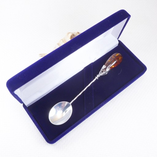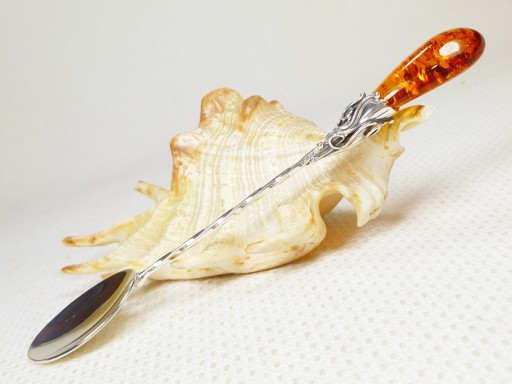 Łyżeczka srebrna z bursztynem naturalnym bałtyckim