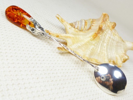 914/14 Łyżeczka Srebro z Bursztynem -HAND MADE-