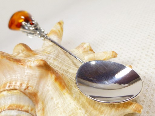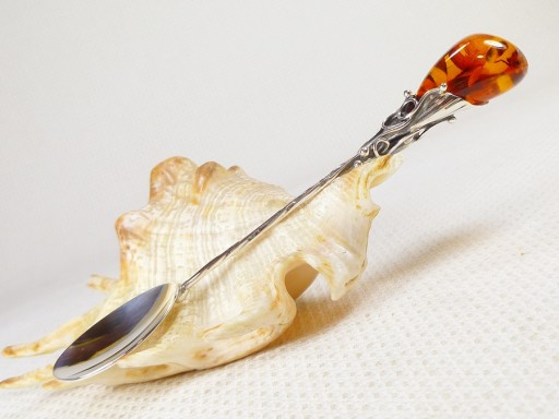 Łyżeczka srebrna z bursztynem, handmade 914-15