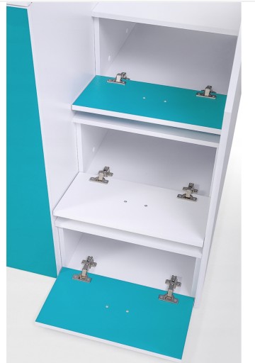 - biały + biały połysk + turkusowy uchwyt