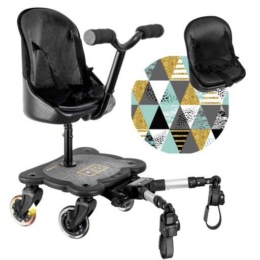 - Duża powierzchnia antypoślizgowa platformy redukuje ryzyko poślizgnięcia się dziecka na platformie oraz odblaskowe elementy dla dodatkowego bezpieczeństwa dziecka