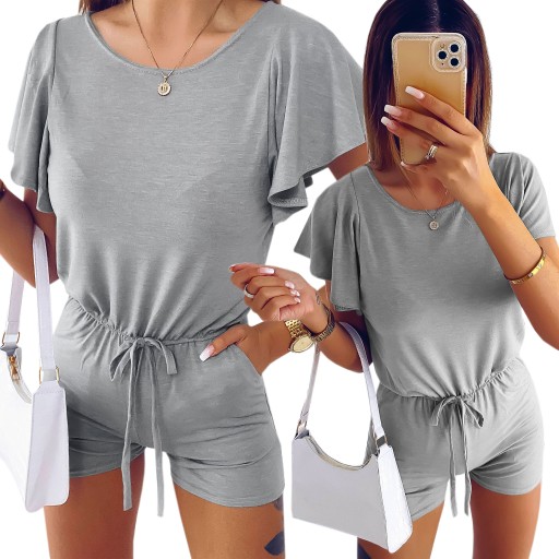 Kombinezon dla kobiet, które lubią bawić się modą. Wyjątkowy kombinezon z ozdobną falbaną na rękawkach. Fason posiada krótkie spodenki. W talii znajduje się ściągacz, więc nie musisz martwić się o niekomfortowe przesuwanie się materiału po ciele. Miękki, delikatny materiał będzie idealnie układał się na Twojej sylwetce. Wybierz swój idealny kolor i stwórz stylizację z naszym modelem.