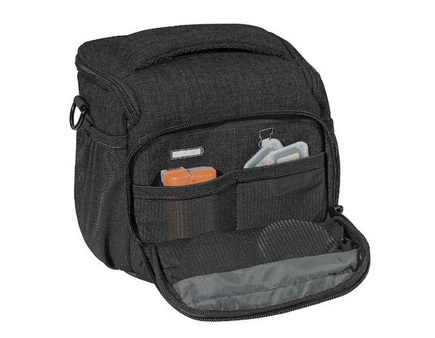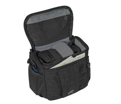 Modna torba na aparat fotograficzny do lustrzanek jednoobiektywowych z wodoodporną osłoną przeciwdeszczową, paskiem do przenoszenia i przegródkami na akcesoria.