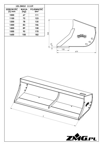 – szerokość lemiesza: #16×150 HB500 dla łyżek skarpowych