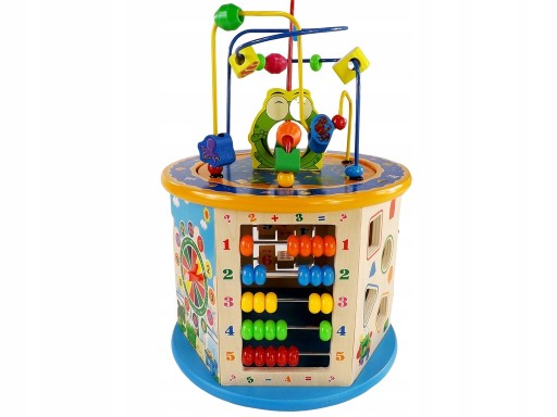 - W skład zestawu wchodzi: kostka edukacyjna z sześcioma funkcyjnymi ścianami i przeplatanką na górze.