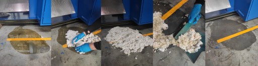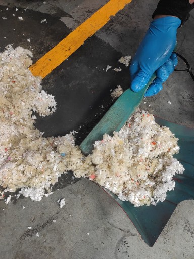 Skład: ok 90% polipropylen - w tym Melt Blown, jako produkt pochodny z produkcji półmasek filtrujących może zawierać metal i poliester, łącznie do 10% składu ogólnego