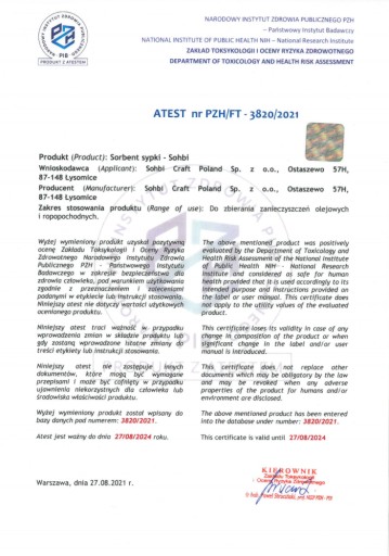 - Absorpcja – ponad 260% swojej masy!!! potwierdzone badaniami CNBOP-BIP