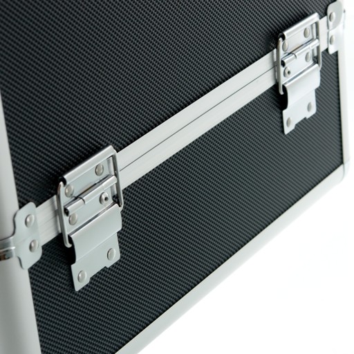 Funkcjonalny, pojemny i doskonale prezentujący się kuferek. Wewnątrz wyłożony czarnym, łatwym do utrzymania w czystości satynopodobnym materiałem. Okucia, narożniki oraz uchwyt wykonane zostały z metalu.