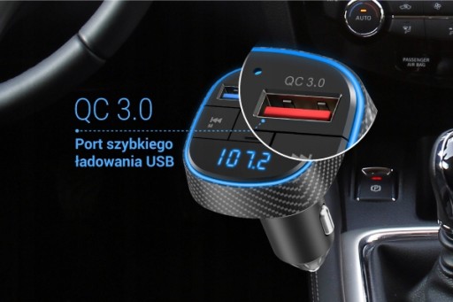 Nadajnik FM jest bardzo praktyczny, ponieważ umożliwia słuchanie muzyki, a także może być używany jako ładowarka. Podłącz smartfon lub inne urządzenia do gniazda Fast Charge USB 3.0 za pomocą kabla USB i ładuj je z dużą prędkością za pomocą gniazda samochodowego. Technologia Fast Charge 3.0 gwarantuje niezwykle szybkie ładowanie – szybsze niż w przypadku konwencjonalnych technologii ładowania.