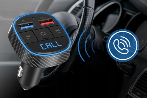 Transmiter FM z funkcja głośnomówiącą, umożliwiający odtwarzanie plików audio z zewnętrznych dysków USB, za pośrednictwem protokołu Bluetooth lub kart pamięci micro SD.