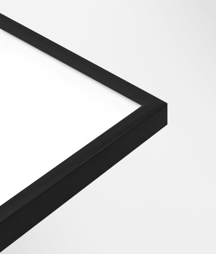 Minimalistyczna estetyka ramy podkreślona poprzez matowe wykończenie koloru, o lekko zaokrąglony profil idealnie dopasowuje się do szkła, co podkreśla wyjątkowość każdej oprawionej pracy.