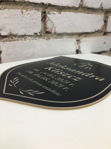 - tabliczka wykonana jest z laminatu grawerskiego w kolorze czarnym