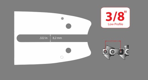 - Skok łańcucha: 3/8"