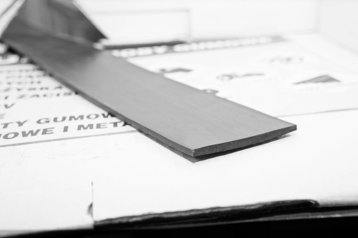 Taśma wykonana z gumy litej czarnej , bez zbrojenia EPDM (odporna na warunki atmosferyczne) MIĘKKA,ELASTYCZNA.