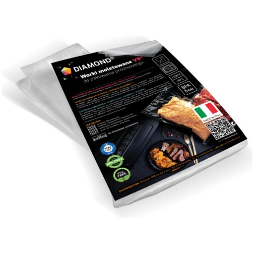 Worki moletowane do pakowania próżniowego żywności przy użyciu pakowarek listwowych – bezkomorowych. Umożliwiają szczelne zabezpieczanie pakowanej żywności, która izolowana od dostępu powietrza i wilgoci, dłużej zachowuje świeżość oraz wartości odżywcze. Opakowania współpracują z wszystkimi popularnymi na rynku modelami pakowarek. Odpowiednio dobrana struktura przetłoczeń ułatwia sprawne i szybkie odsysanie powietrza.