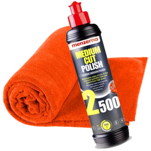 Dla uzyskania najlepszych efektów po użyciu Menzerna Medium Cut Polish 2500 nadaj powierzchni lakieru wysoki połysk pastą wykończeniową Menzerna Final Finish 3000 lub Menzerna Super Finish 3500