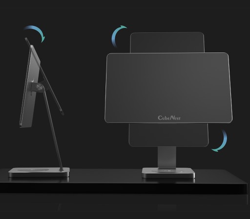 Magnetyczny stojak aluminiowy z bezprzewodową ładowarką od CubeNest doceni każdy użytkownik urządzeń Apple. Nie tylko służy jako świetna podstawka pod iPada, ale także szybko ładuje telefon lub słuchawki bezprzewodowe. Produkt jest kompatybilny z funkcją MagSafe i ładuje z prędkością nawet do 15W.