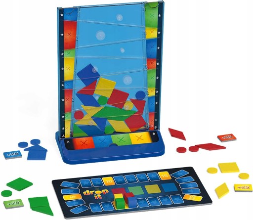 W tej kolorowej, pomysłowej grze rodzinnej gracze upuszczają kształty na pionową planszę. Zdobywają punkty za najwyższy poziom, jaki osiąga ich kształt, gdy wyląduje, oraz dodatkowe punkty za dotknięcie kręgów bonusowych. Ale uważaj: nie łam zasady lądowania! Upuszczony kształt nie może dotykać pasujących kształtów lub kolorów po wylądowaniu. Zwycięzcą zostaje gracz lub drużyna z największą liczbą punktów na koniec gry!