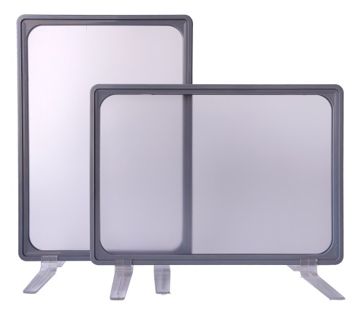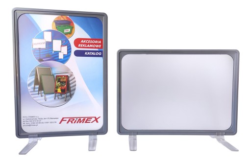 Ramka plastikowa A4 stojąca na dwóch stopkach z folią ochronną na plakat