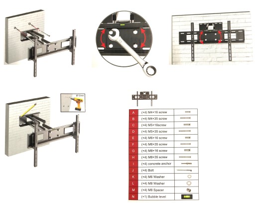 * dołączono standardowe/uniwersalne śruby pasujące do 99% telewizorów. Jeśli w uniwersalnym zestawie będzie brakowało odpowiednich śrub do Twojego telewizora, należy je nabyć we własnym zakresie.