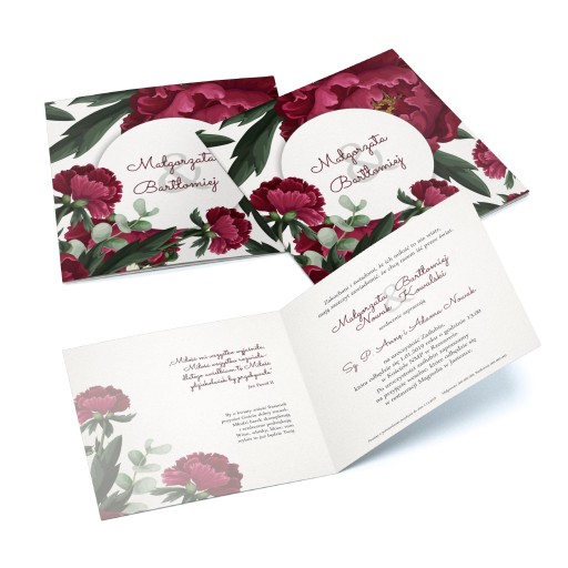 Zaproszenia mogą być wykonane na wysokogramaturowym papierze kredowym, jak również na papierze ozdobnym: m.in. satynowym lub o strukturze płótna.