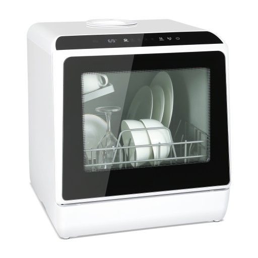 Mini zmywarka stołowa, do użytku z i bez podłączenia do wody, szerokość 43 cm, miejsce na 4 sztućce, do użytku na kempingu, 175 kWh/rok, biały