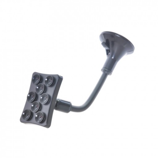 Uchwyt wyposażony w 8 super miękkich silikonowych przyssawek pozwalających błyskawicznie umocować telefon, smartfon, iphone. Aby urządzenie mocno się trzymało, przyssawki należy utrzymać w idealnej czystości. Wszelki brud i kurz osłabiają właściwości przyssawek. Zakurzone przyssawki wystarczy przepłukać czystą wodą.
