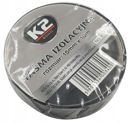 K2 ИЗОЛЯЦИОННАЯ ЛЕНТА ПВХ 15мм x 10м ПРОЧНЫЙ КЛЕЙКИЙ