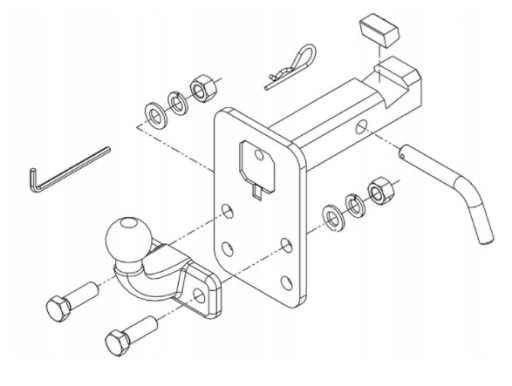 Regulowany adapter składa się z dwóch elementów: korpusu oraz kuli, które można łatwo zamontować i zdemontować. Pozwala to na bardzo szybkie podłączenie haka do auta lub jego demontażu, gdy tylko pojawi się taka potrzeba.