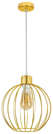Nowoczesna lampa sufitowa - żyrandol w kolorze złotym i drucianym kloszem. Designerski styl, który doskonale wkomponuje się w Twoje wnętrza.
