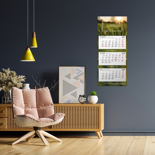 Kalendarz trójdzielny - najpopularniejsza opcja kalendarza trójdzielnego z własną reklamą w budżetowej cenie.