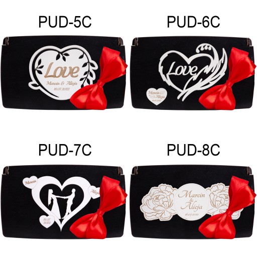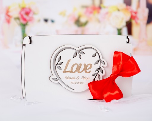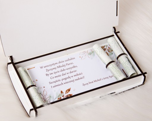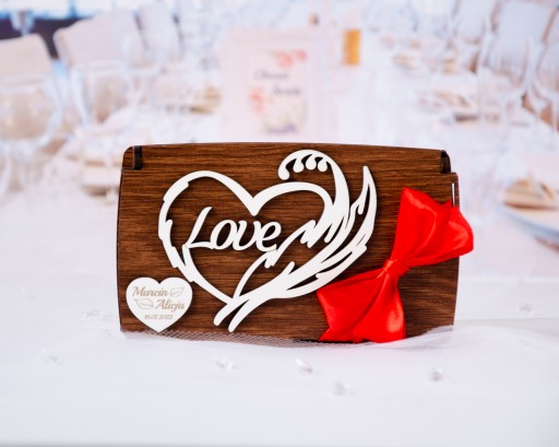 Personalizowana kartka na ślub w postaci otwieranego pudełka z grawerowaną nakładką. Wykonane z wysokiej jakości materiałów. Idealna alternatywa dla tradycyjnych papierowych kartek, która pozostanie wspaniałą pamiątką na lata.