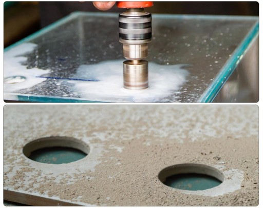 Może wiercić otwory w płytkach, gresie, szkle, ceramice i innych materiałach