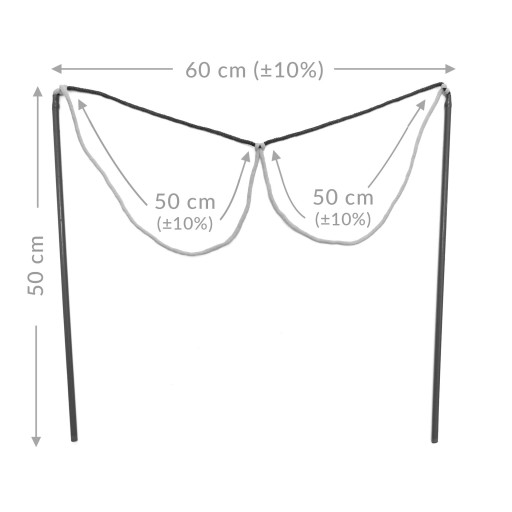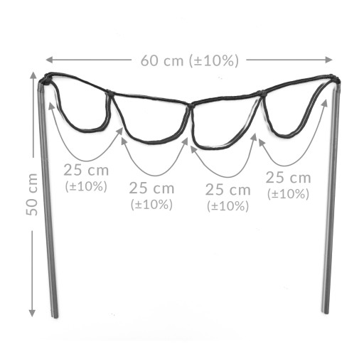 Długość sznurka – 2 metry, 2 otwory o średnicach od 40 - 50 centymetrów.
