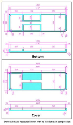 - Wymiary wewnętrzne : 119 x 34,5 x 7 cm (dł. x szer. x wys.)