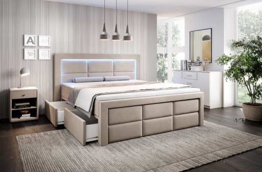 Łóżko kontynentalne ASPEN to z pewnością łóżko, którego szukasz do swojej sypialni. Niezwykle eleganckie i nowoczesne nadaje się do każdego wnętrza. Elementem wyróżniającym łóżko tapicerowane ASPEN są bez wątpienia proste przeszycia oraz zamontowane oświetlenie LED w zagłowiu. W łóżku zastosowano materace na 9 strefowej sprężynie kieszeniowej. Podstawa posiada dwa użyteczne, pojemne pojemniki na pościel. Możliwość wyboru koloru i rodzaju tkaniny z dostępnych poniżej na indywidualne zamówienie.