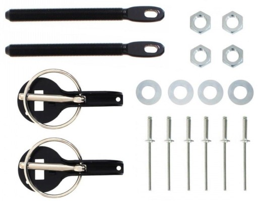 Uniwersalne zapinki do wykonane z aluminium. Mogą być zastosowane do maski, klapy, zderzaka, itp.