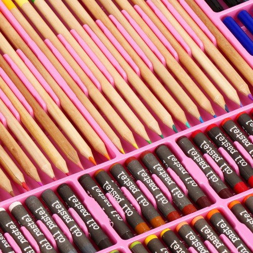 Zapoznając się w wyposażeniem zestawu artystycznego warto zauważyć, że bogata paleta barw i akcesoriów sprawdzi się również dla dorosłych podczas szkicowania czy kolorowania.