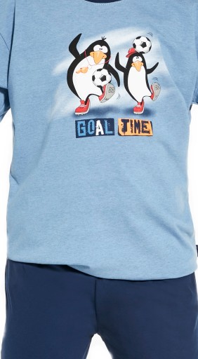 Na przodzie kolorowy nadruk dwóch pingwinów grających w piłkę nożną oraz napis: "Goal time".
