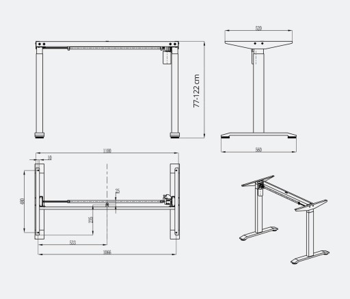 W Spacetronik Ergoline stawiamy na detale. Odpowiednio zaprojektowany stelaż zapewnia stabilność biurka nawet na jego najwyższej wysokości. Grubsza i trwalsza powłoka proszkowana jest odporna na zarysowania, wodę i plamy. Regulowane biurko posiada blat o rozmiarach 118 cm x 60 cm x 2 cm. Maksymalna nośność biurka wynosi 80 kg. Zainstalowana w blacie przelotka kablowa pozwola zachować ład i porządek wśród przewodów na biurku.