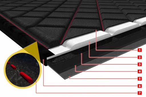 - Wykładzina dywanowa (6mm) zwiększa masę dywanika zapewniając stabilne ułożenie w kabinie.