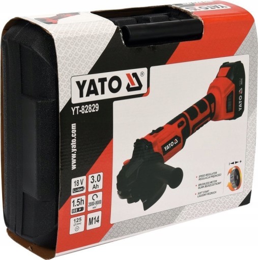 УГЛОВАЯ ШЛИФОВАЛЬНАЯ МАШИНА YATO 125 мм 18 В БЕСЩЕТОЧНАЯ 3 Ач