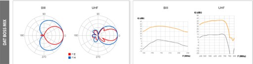 - Zysk energetyczny: 8,5dB (BIII), 16dB (UHF)