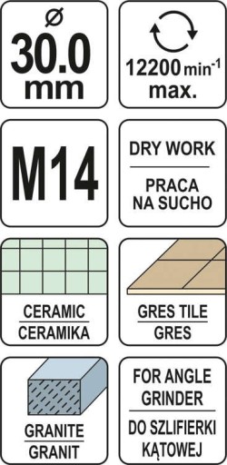 DIAMENTOWE WIERTŁO DO GRESU 30MM, DO WIERCENIA NA SUCHO SZLIFIERKĄ KĄTOWĄ