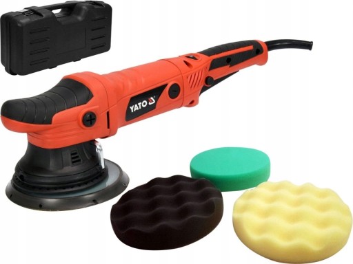Profesjonalna polerka mimośrodowa marki YATO, wyposażona w regulację obrotów i system podtrzymania mocy na niskich obrotach, także przy mocnym docisku maszyny.