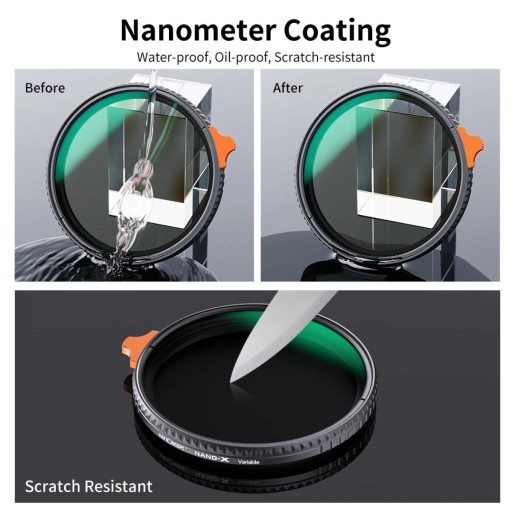 Filtr wykonany z japońskiego szkła optycznego, wielowarstwowa powłoka jest wodoodporna, olejoodporna, odporna na zarysowania oraz kurz.