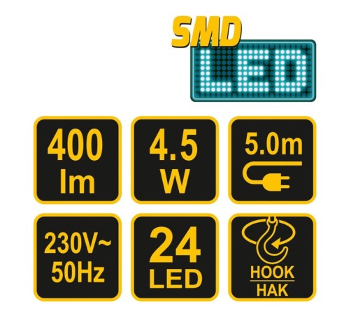 Uniwersalna, przewodowa oprawa przenośna z wbudowanymi diodami SMD LED.