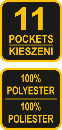 Posiada 11 kieszeni oraz 2 metalowe uchwyty na młotek.
