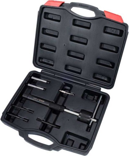 7 elementowy zestaw do demontażu uszkodzonej świecy żarowej, przeznaczony jest do fachowego usunięcia złamanej bądź uszkodzonej świecy żarowej. W kompaktowej walizce znajdziemy: