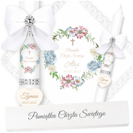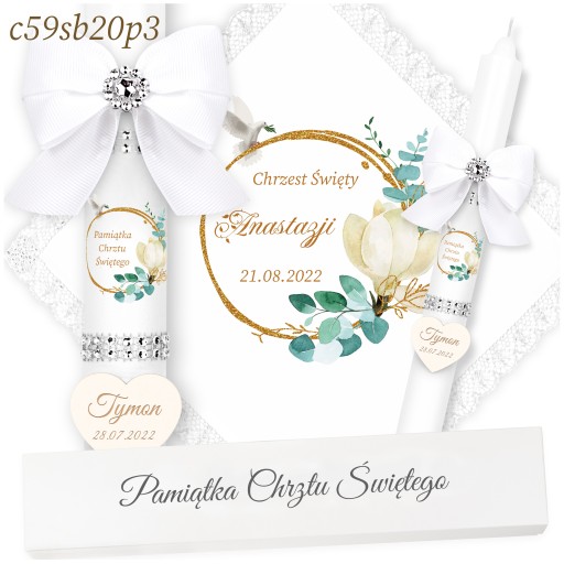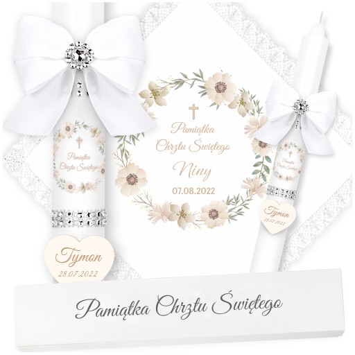 - owinięcie materiałem satynowym z napisem "Pamiątka Chrztu Świętego",